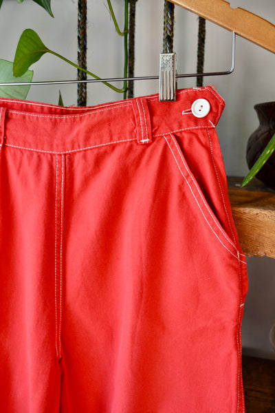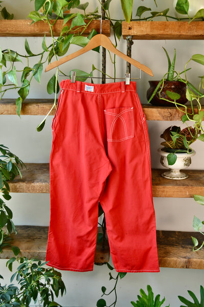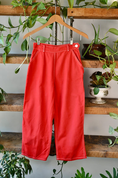 Vintage 50s Red Topsail Sanforized Clam Digger Style Capri Pants. Metal Side Zipper with Button Closure. Three Pockets. High Waisted. Unlined.