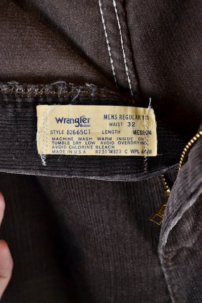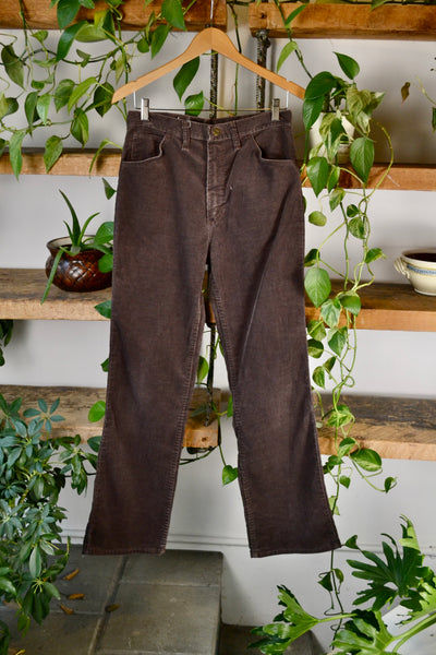 Vintage Seventies Brown Wrangler Cords. Zipper Fly With Button Closure. Mens Regular Fit.
