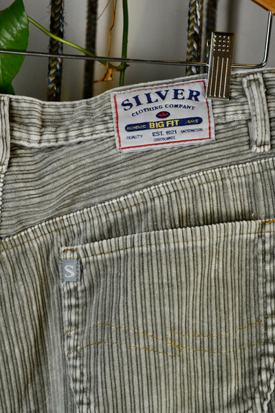 Vintage Nineties Silver Jeans Baggy Sage Green Cords. Button Fly. Tapered Leg.