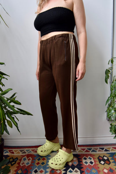 Vintage Brown and Tan Striped Lounge Pants. Elasticized Waist. Two Zip Pockets.