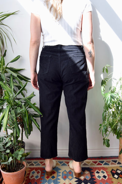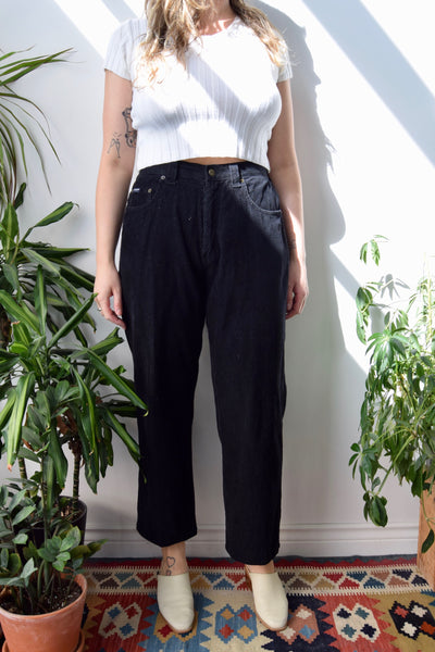 Black Cotton Cord Pants. Zipper Fly. Five Pockets. Straight Leg.