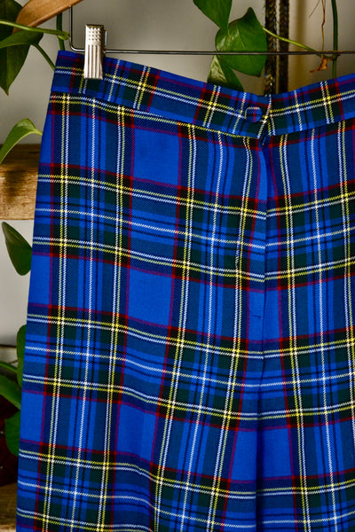 Vintage "Surrey Classics" Blue Plaid Wide Leg Trousers. Zipper Fly With Button Closure. No Pockets. Unlined.