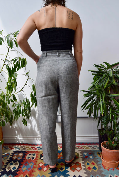 Black And White Houndstooth Calvin Klein Trousers. Zipper Fly. Button Waist. Two Hip Pockets. Pleated Front. Unlined.