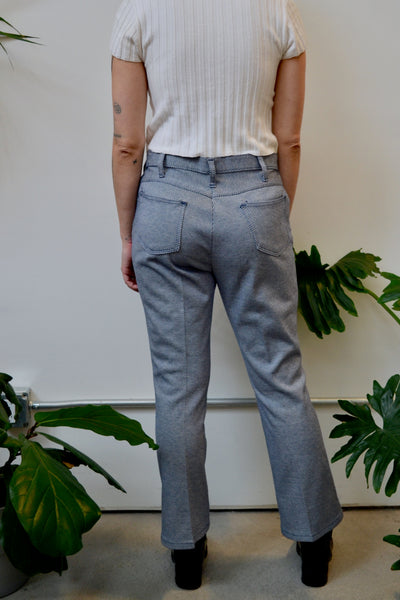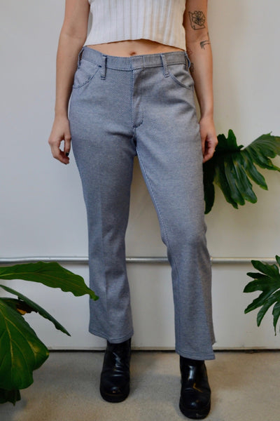 Seventies Dickies Diagonal Hickory Stripe White & Blue Work Pants. Four Pockets. Scovill Zipper Fly With Hook & Eye Closure. Unlined.