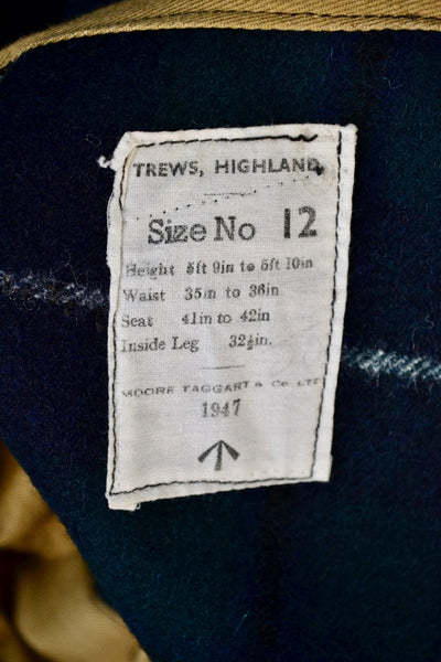 Vintage 1940s Highland Wool Trews/Trousers. High Waisted. Button Fly. Two Hip Pockets. Unlined.