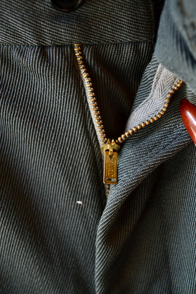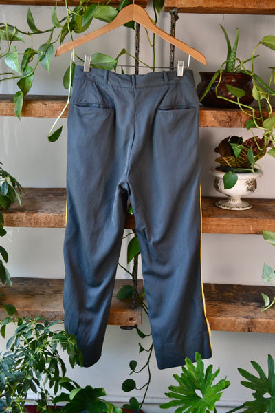 Vintage Fifties (?) Grey Uniform Trousers. Side Stripe. Metal Aero Zipper Fly With Button Closure. Unlined. Four Pockets.