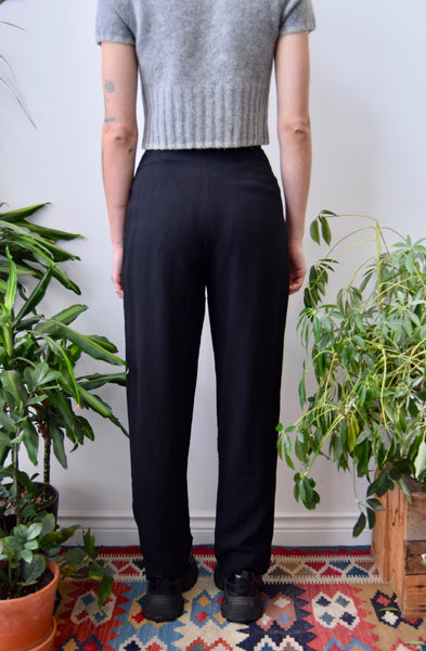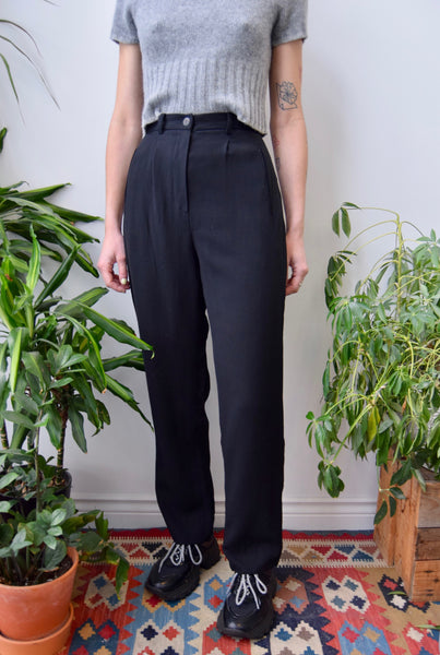 Black Wool Trousers. High Waist. Zipper Fly. Two (Unopened) Pockets. Lined. Straight Leg.