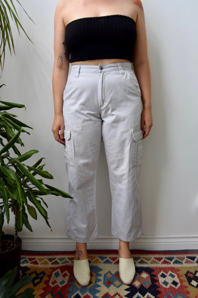 Khaki Cargo Pants. Zipper Fly. Eight Pockets. Straight Leg.