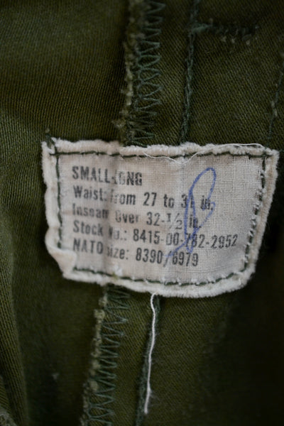 Vintage Seventies Army Trousers. Serval Zipper Fly With Button Closure. Adjustable Waist Cinch. Many Pockets. Unlined.