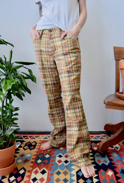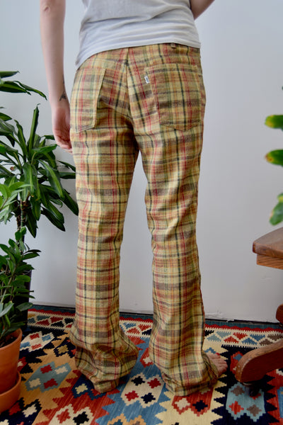 Levi's 1970's Plaid Bell Bottoms. Four Pockets. Zipper Fly And Button Waist.