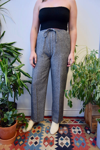 Speckled Grey Silk Lounge Pants. Two Hip Pockets. Elastic And Drawstring Waist. Lined.