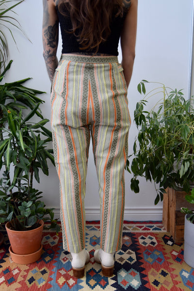 High Waist Textured Slim Leg Pants. Side Zipper Closure. Cute Button Placket At Hips Detail.