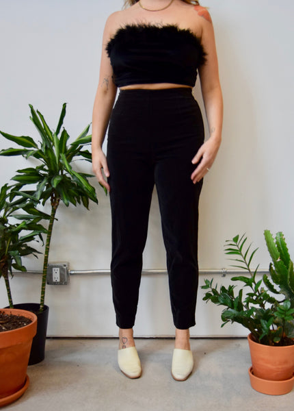 Flat Front And Back Velvet Pants. Side Zipper And Inner Button Closure.