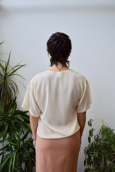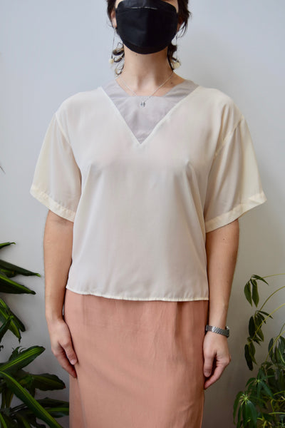 Pierre Cardin Cream T-Shirt Style Blouse With Grey V Detail.