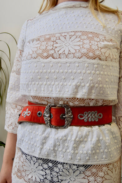 Bottega Veneta Leather And Velvet Belt. Heavy Silver Hardware And Buckle. Leather Backing, Velvet Front.