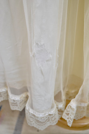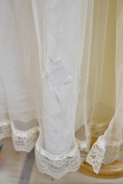 Good Vintage Condition - Tag Cut Out, Holes in Sheer Lace Overlay on Back Of Skirt. (see photos, needs to be mended) Zipper Replaced, skirt might be missing a layer