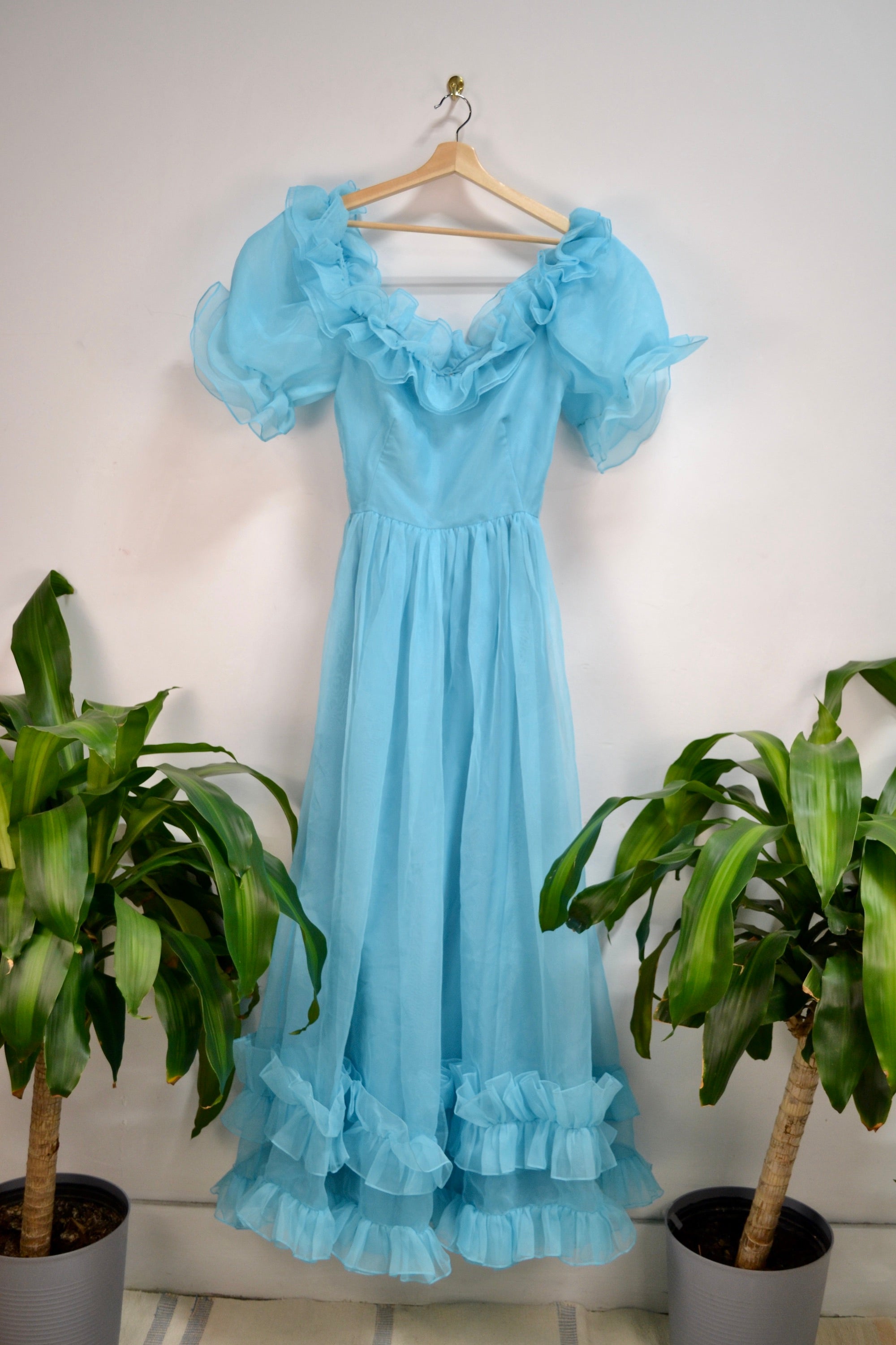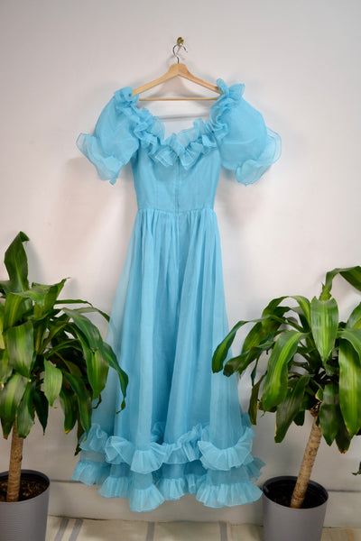 Vintage 1980's Sky Blue Ruffle Party Dress