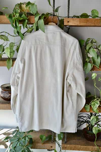 Vintage 90s/00s Cream Cord Zip Up Light Jacket. Unlined. Two Chest Pockets. Classic Collar.