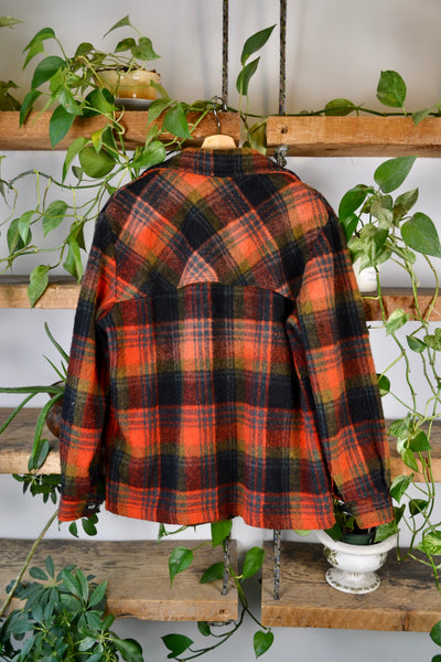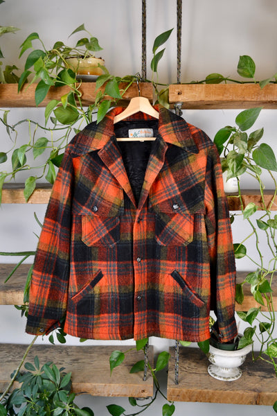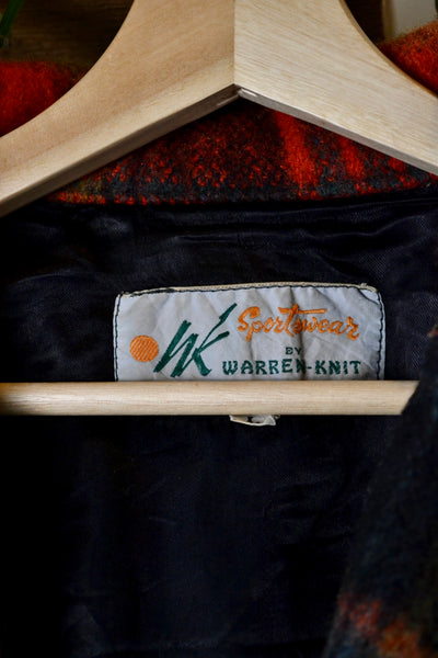 Vintage 70s/80s Warren-Knit Sportswear Plaid Wool Hunting Jacket. Button Closure. Four Pockets. Oversized Notched Collar. Unlined.