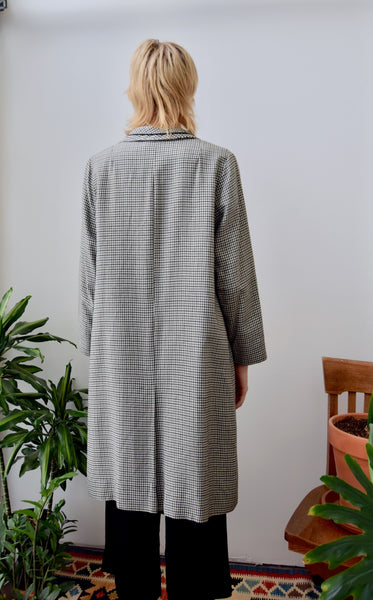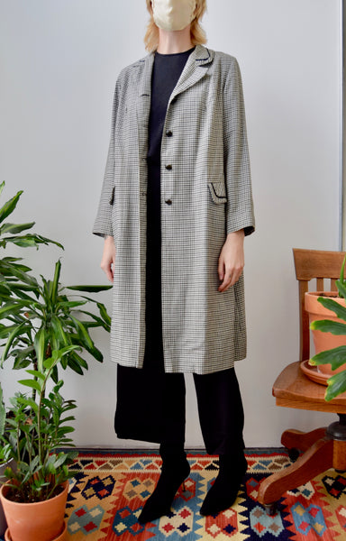 Houndstooth Trench. Button Front. Two Pockets. Black Piping Details On Collar And Pockets.