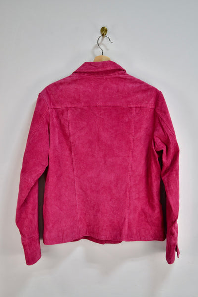 Y2K "Christopher & Banks" Deadstock Hot Pink Suede Jacket. Two Pockets. Snap Button Closure. Lined.