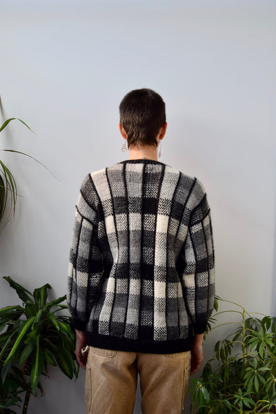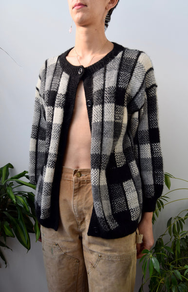 Multi Grey Alpaca Wool Cardigan. Collarless. Two Pockets. Unlined.