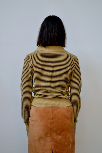 60s/70s "Little Lisa LTD" Chevron Striped Sweater. Shawl Collar. Ribbed Cuffs and Waist. Unlined.