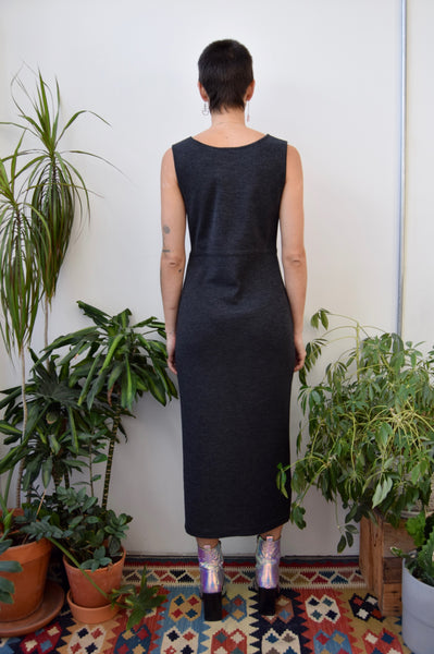 Charcoal Grey Merino Wool Dress. Scoop Neck. Single Pocket. No Closures. Unlined.