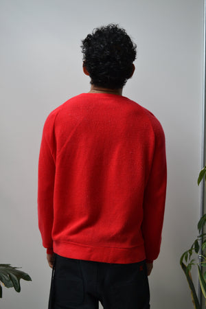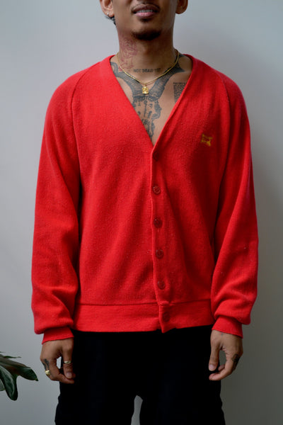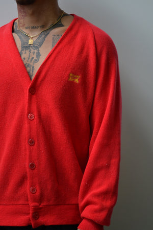 Seventies/Eighties Red Knit Cardigan. Embroidered Miller Beer Patch on Chest. Button Closure in Front. Raglan Sleeve. Unlined.