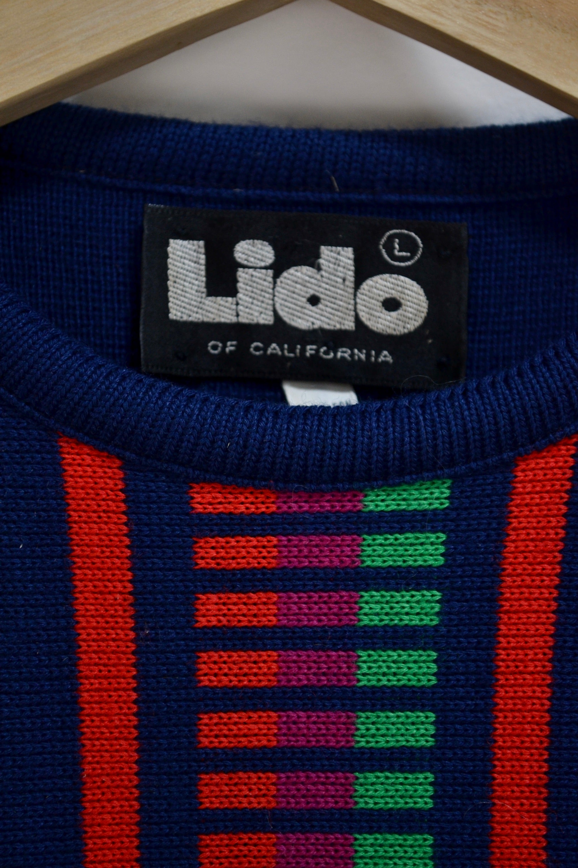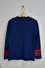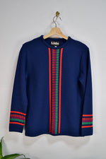 Vintage Seventies "Lido" Navy Blue Knit Wool Ski Sweater. Unlined.
