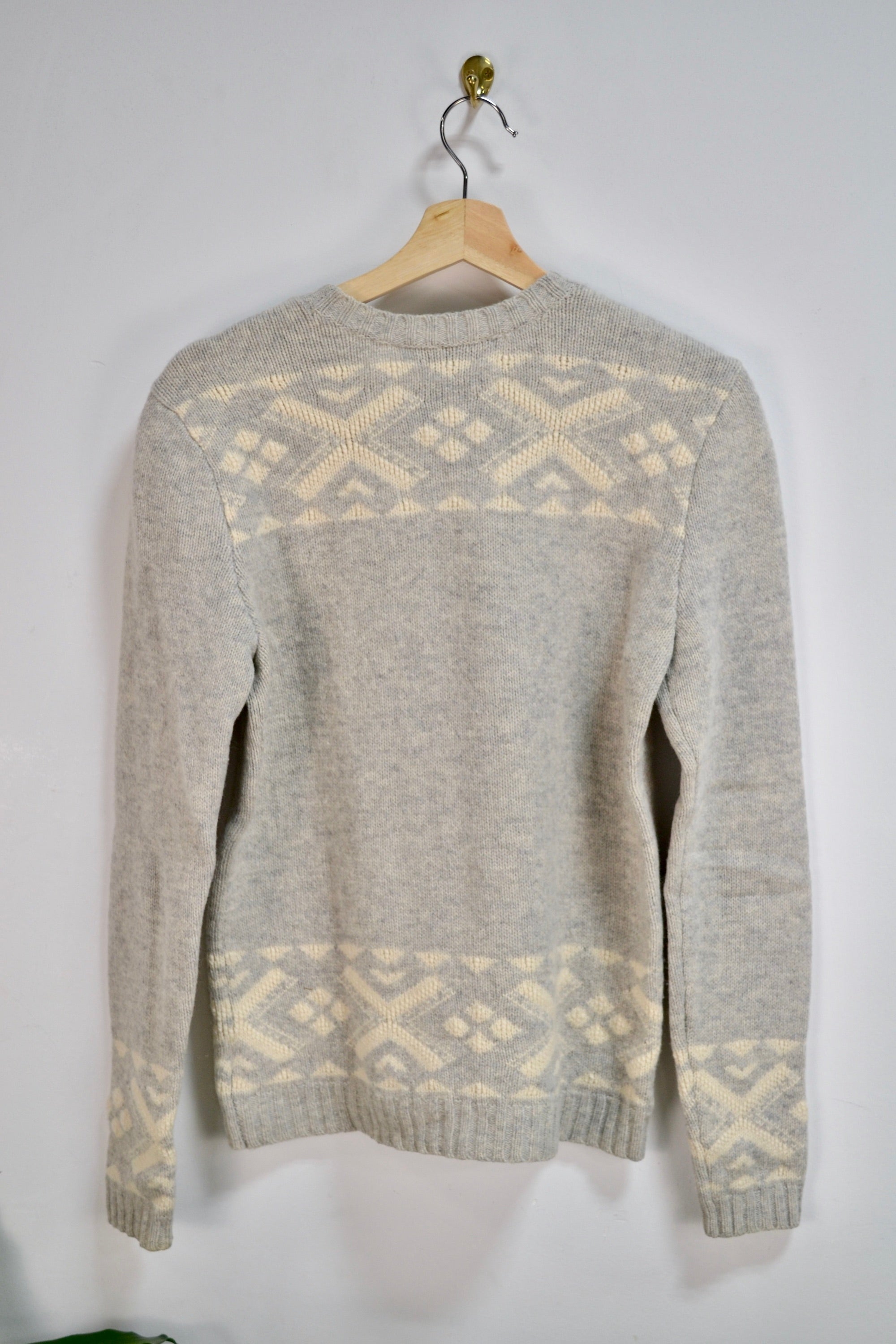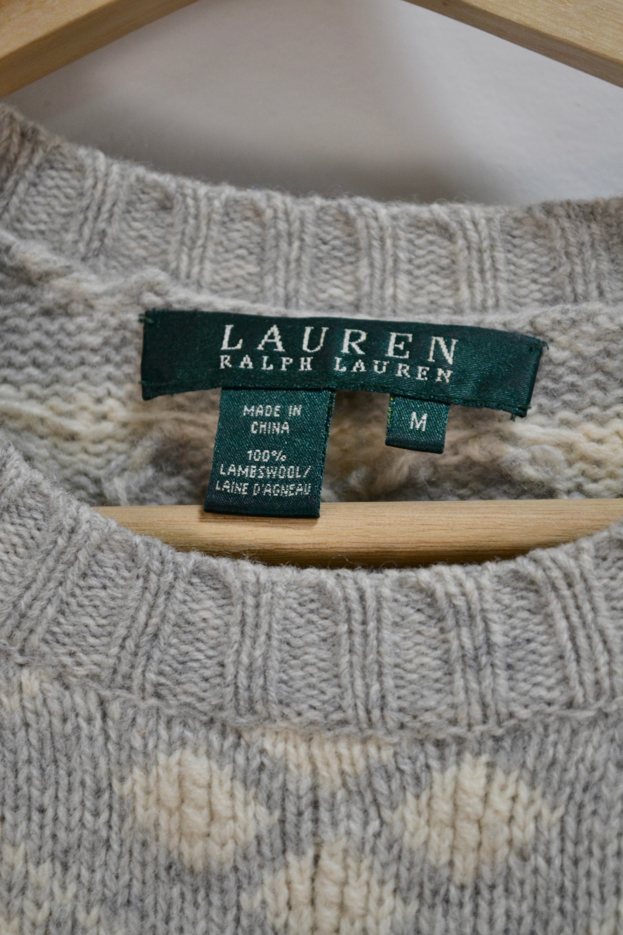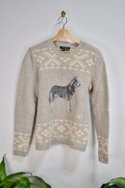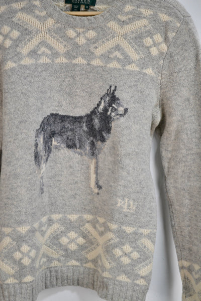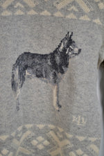 Vintage Late 90s/Early 00s Ralph Lauren Light Grey Knit Wolf Sweater. Unlined.