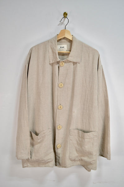 Beige Flax Linen Long Sleeve Button Up/Light Jacket. Unlined. Two Pockets.