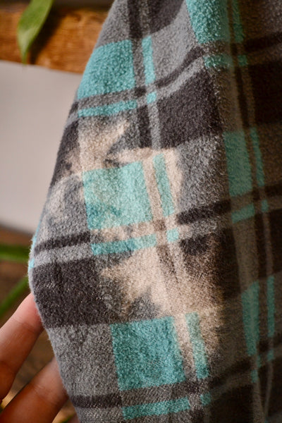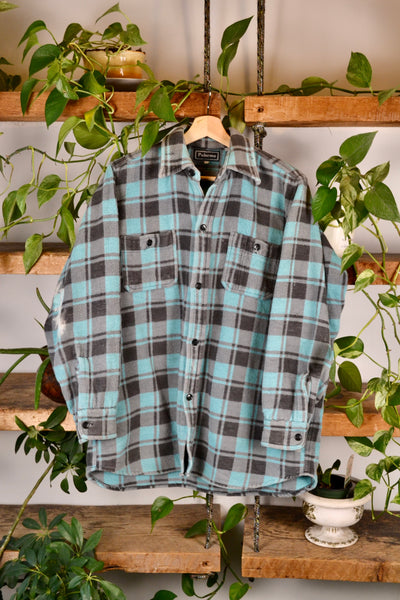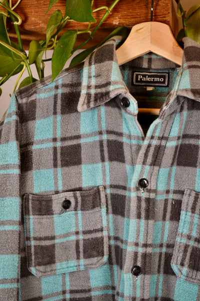 Vintage Champion Style Teal and Grey Thick Cotton Plaid Button Up.