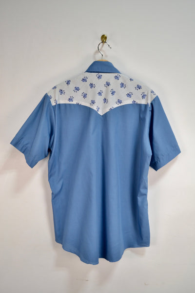 Vintage Western Short Sleeve Button Up. Snap Button Closure. Two Chest Pockets. Pointed Collar.