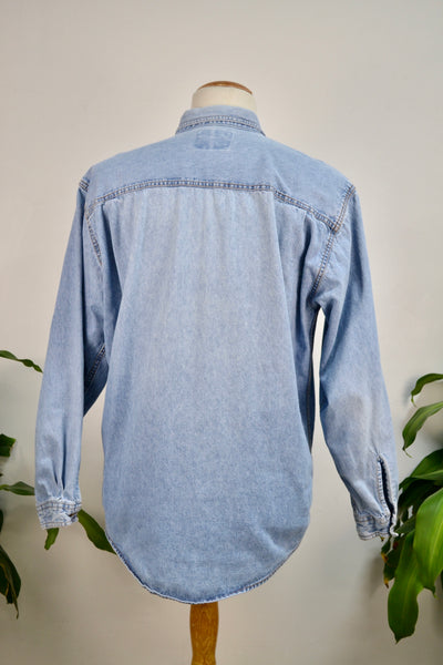 Nineties Orange Tab Levi Denim Button Up Shirt. Long Sleeve. Classic Collar. One Chest Pocket.