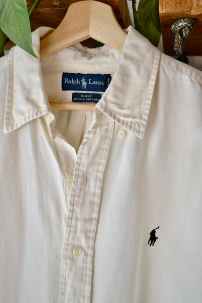 Vintage Nineties/Aughts "Ralph Lauren" Cream Silk and Linen Blend Button Up Shirt.