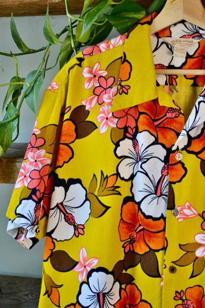 Vintage "Royal Hawaiian" 60s/70s Mustard Yellow Floral Button Up Shirt.