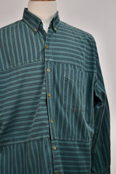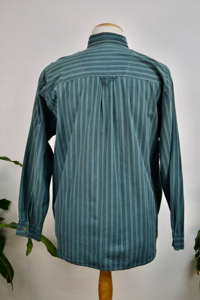 Nineties "Gitano" Green and Blue Vertical & Horizontal Striped Button Up Shirt.