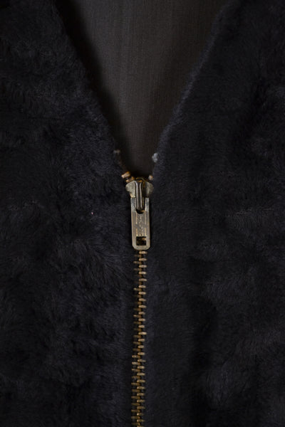 Vintage 60s Brown Faux Fur Vest Top. Lined. Two Pockets. Metal Talon Zipper Closure.