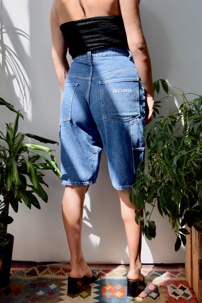 "Boss" Denim Cargo Shorts. High Waist. Zipper Fly. Six Pockets.