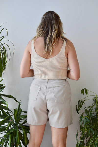 High Waist Liz Claiborne Five Pocket Denim Shorts. Zipper Fly And Button Waist.