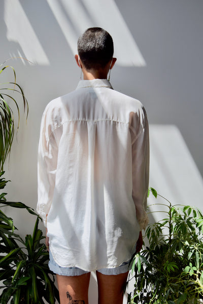 Ivory Silk Blouse. Collared. Frog Detail Along Front.