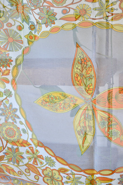 Adorable Vintage Sheer Silk Floral Scarf. Hand Rolled Edges.