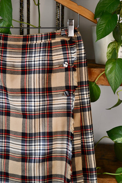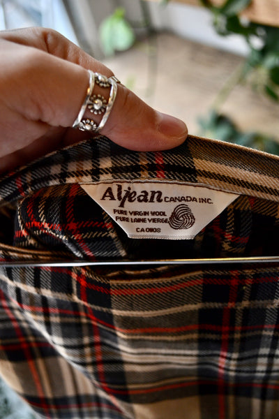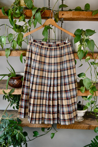 Vintage Eighties "Aljean" Nova Check-Ish Pleated Wool Skirt. Unlined. Button Closure.