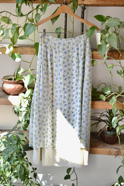 Vintage Nineties "April Cornell" Floral Tiered Rayon Maxi Skirt. Lined With Different Floral Pattern. Zipper and Button Closure. Overlay is Open on Sides.