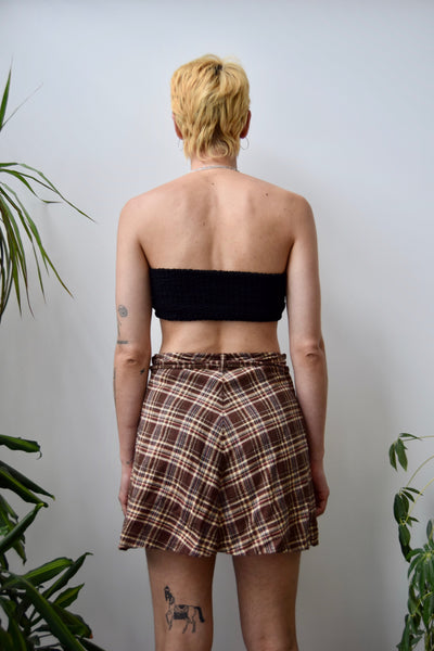 True *Tai Post-Makeover* Nineties "ESPRIT" Brown Plaid Wrap Skirt. Double Tie Wrap Waist Closure. Unlined.