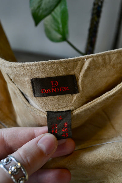Vintage 90s/00s Danier Tan Suede Midi Skirt. Lined. Zipper Closure.