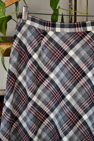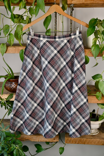 Vintage Grey Plaid Skirt. Unlined. A Line. Talon Side Zip and Button Closure.