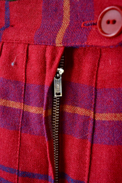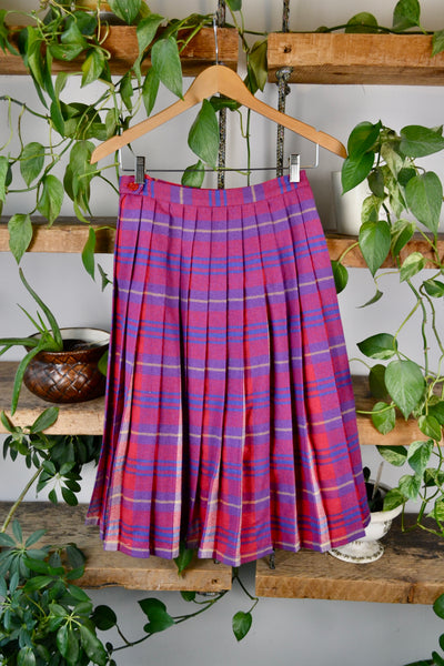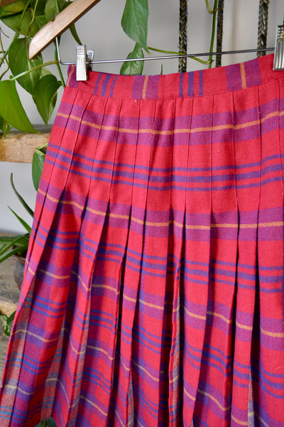 Vintage Fifties Reversible Plaid Pleated Wool Skirt. Metal Zipper and Button Closure. Unlined.