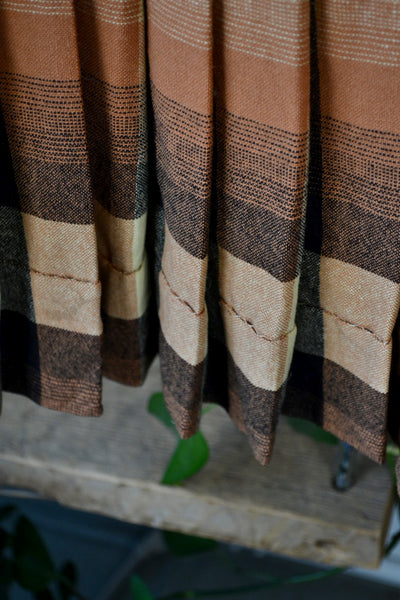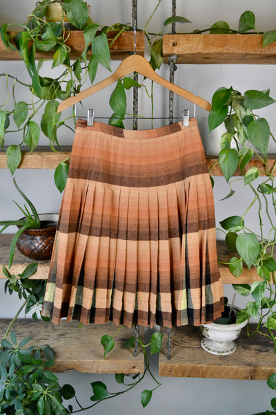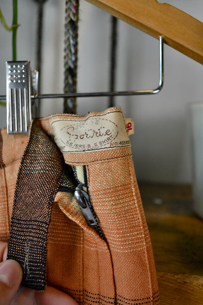 Vintage Fifties Orange and Black Pleated Plaid Reversible Wool Skirt. Metal Zipper and Button Closure. Unlined.
